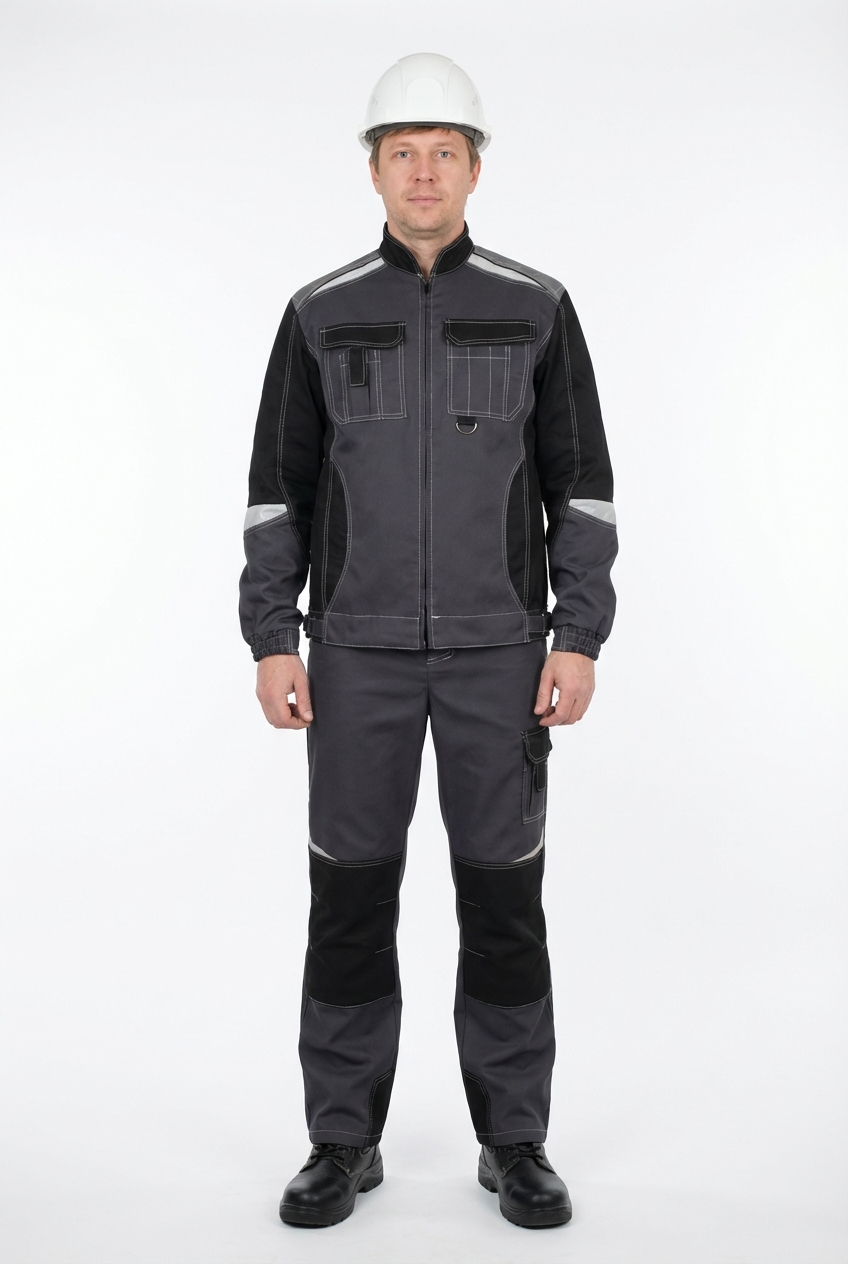 Полукомбинезон с притачной нагрудной частью, н акоторой расположен многофункциональный карман с клапаном на липучку. Застежка гульфика на молнию, левая боковая застежка на пуговицы. На левом боковм шве многофункциональный карман с клапаном на липучку. На задней левой половинке накладной карман и карман для инструментов. Спинка с резинкой, для лучшего прилегания. Полукомбинезон с бретелями, с застежкой-фастексом, длина регулируется резинкой. на передних половинках. Полукомбинезон хорошо сидит на фигуре, за счет анатомического кроя. Усиленный шаговый шов. По низу брючин расположены усилительные накладки, обеспечивающие большую износостойкость.