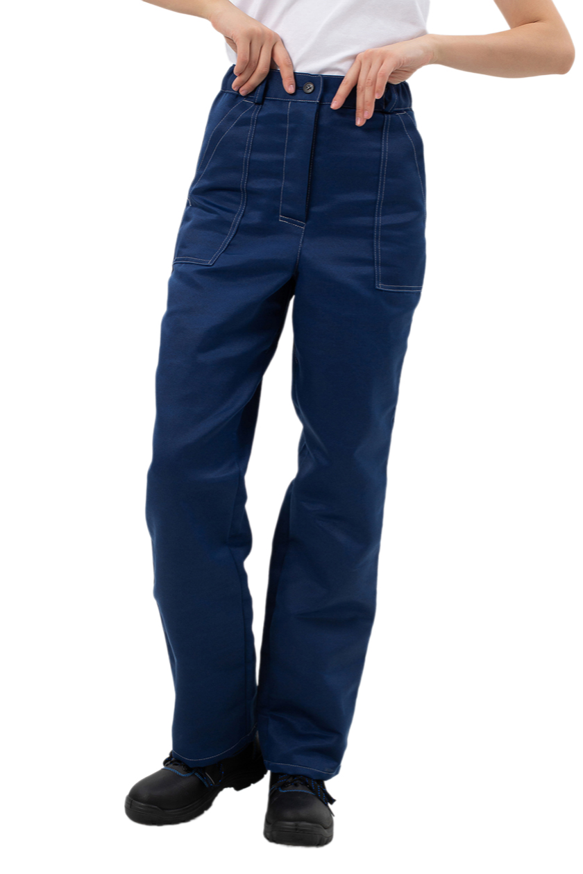 ➠ Брюки с притачным поясом, по бокам стянутый эластичной тесьмой, застежка гульфика на тесьму «молния». Передние половинки с накладными карманами с наклонным входом, с наколенниками. На поясе пять шлевок.