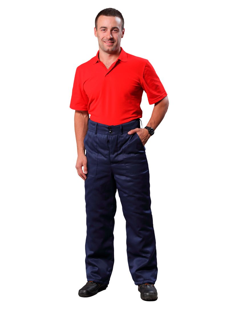 Брюки мужские утепленные с притачным расширенным поясом на теплой подкладке, с застежкой гульфика на пуговицы. Два накладных кармана с наклонным входом. Пояс простеганный.
