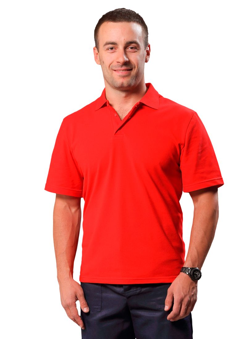 Футболка поло красного цвета.